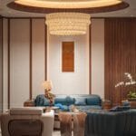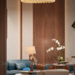 Gỗ không chỉ tạo nên sự sang trọng mà còn giúp căn phòng trở nên ấm cúng hơn. Khi kết hợp với ánh sáng tự nhiên hoặc ánh sáng vàng từ đèn chùm, nội thất gỗ càng làm tăng thêm sự gần gũi, thư giãn. Việc lựa chọn loại gỗ phù hợp như gỗ óc chó, gỗ sồi hay gỗ teak giúp đảm bảo độ bền theo thời gian, giữ được vẻ đẹp tự nhiên và sang trọng.