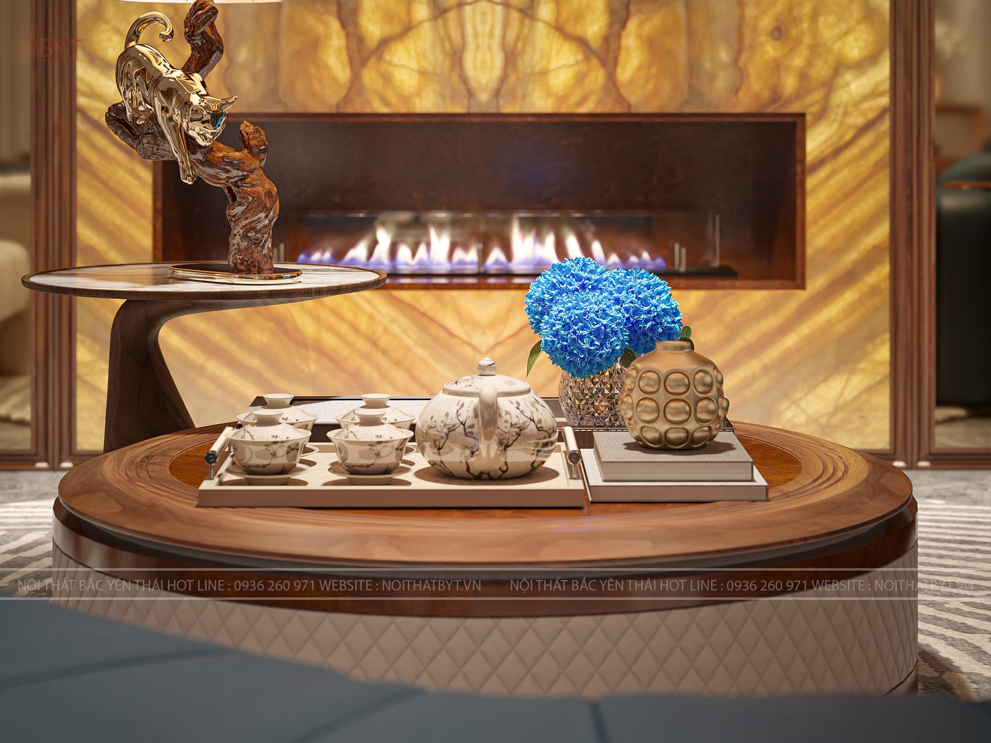 Gỗ không chỉ tạo nên sự sang trọng mà còn giúp căn phòng trở nên ấm cúng hơn. Khi kết hợp với ánh sáng tự nhiên hoặc ánh sáng vàng từ đèn chùm, nội thất gỗ càng làm tăng thêm sự gần gũi, thư giãn. Việc lựa chọn loại gỗ phù hợp như gỗ óc chó, gỗ sồi hay gỗ teak giúp đảm bảo độ bền theo thời gian, giữ được vẻ đẹp tự nhiên và sang trọng.