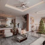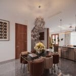 Thiết kế nội thất tầng 1 căn nhà liền kề: sảnh vào, phòng khách và phòng bếp
