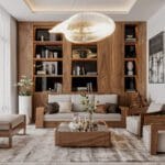 Thiết kế phòng khách với chất liệu gỗ óc chó