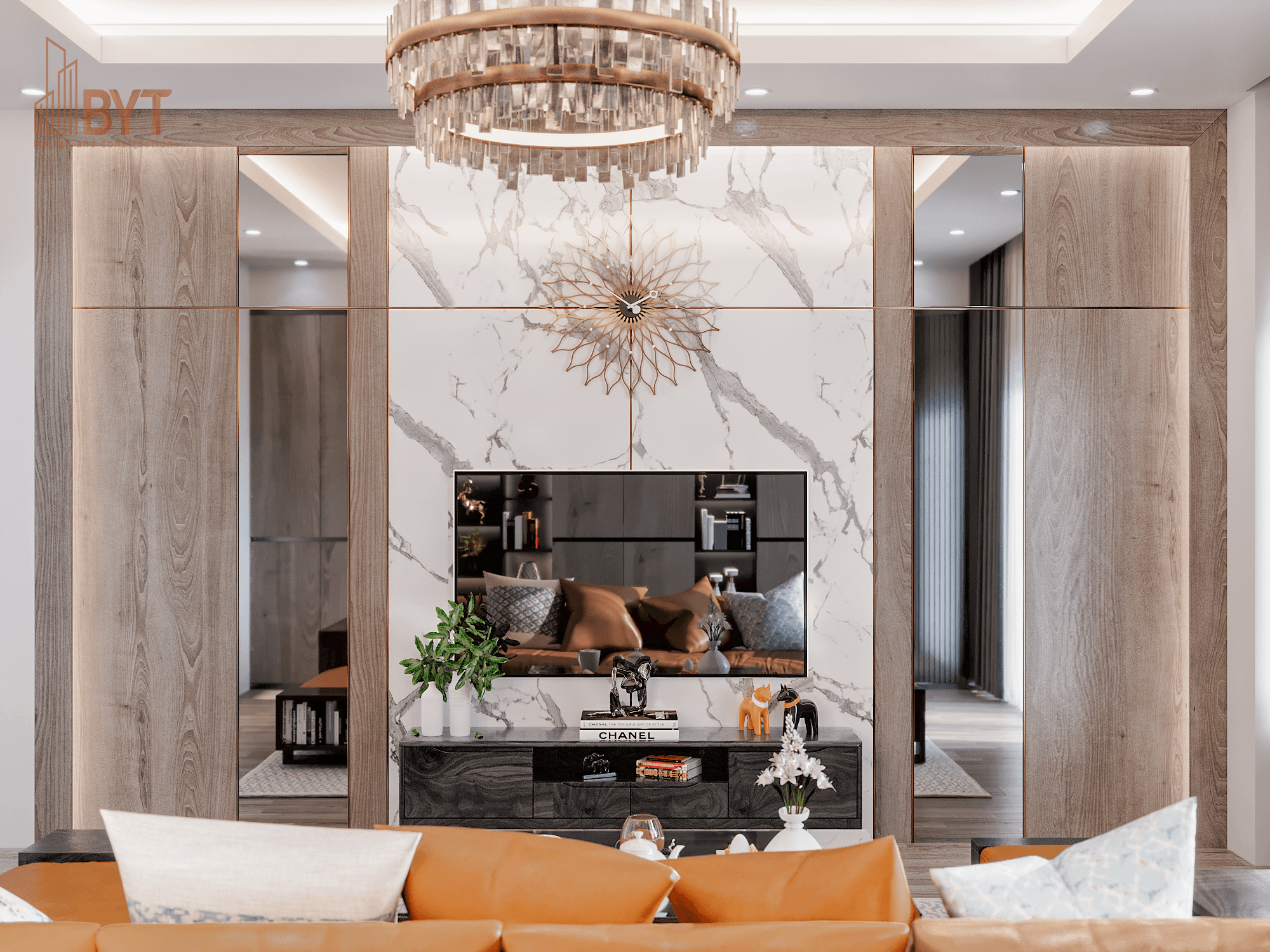 Khám phá thiết kế nội thất phòng khách sang trọng với gỗ tự nhiên. Mang đến không gian ấm cúng, hiện đại và bền bỉ. Liên hệ Nội Thất BYT để tạo dựng không gian phòng khách lý tưởng cho gia đình bạn!