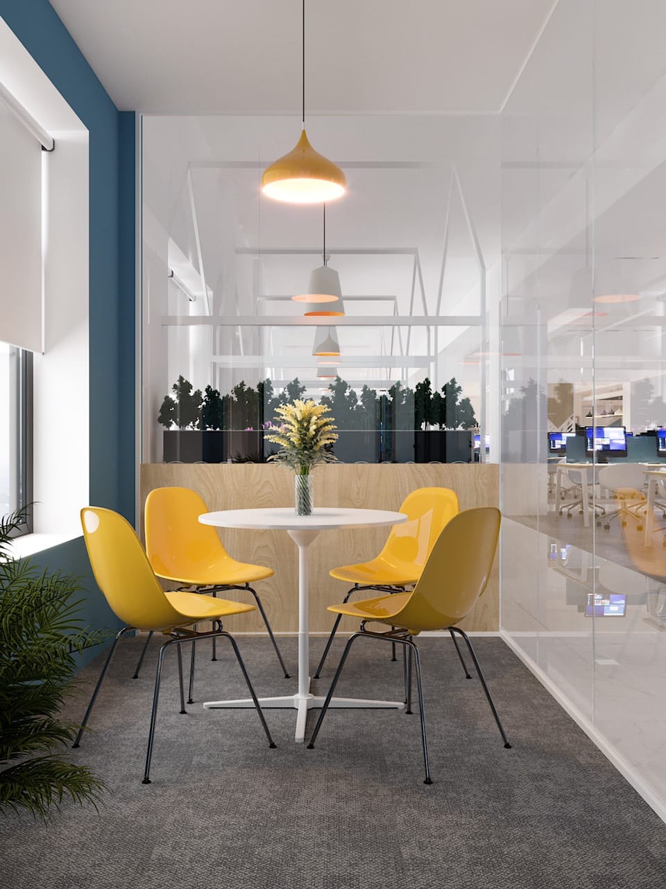 Để đáp ứng nhu cầu làm việc nhóm và bảo mật thông tin tạm thời, công ty thiết kế một vài phòng họp nhóm nhỏ cho quy mô 4 – 8 người với diện tích 15m vuông .Phòng làm việc nhóm được bố trí bàn dài thuận tiện cho việc thảo luận và ghế xoay tiêu chuẩn. Tại căn phòng này, các kỹ sư của Nội thất BYT đã thiết kế thêm nhiều màu sắc bắt mắt, sắp xếp khoa học để khơi dậy cảm hứng sáng tạo và làm việc hiệu quả.